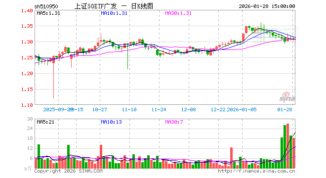 1月28日,上证50ETF广发(510950)涨0.31%,成交额2395.32万元。当日份额减少675.00万份,最新份额为9420.00万份,近20个交易日份额增加2250.00万份。最新资产净值计算值为1.23亿元。