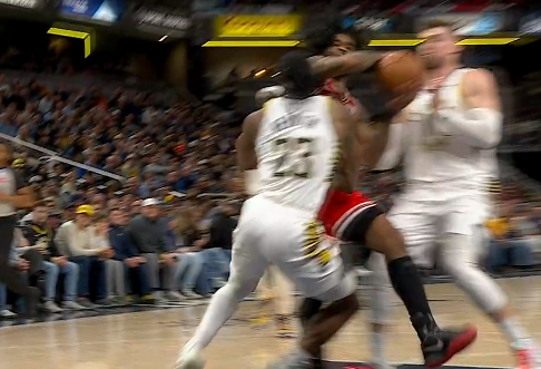 内史密斯被怀特挥肘打到面部被吹防守犯规,步行者挑战失败