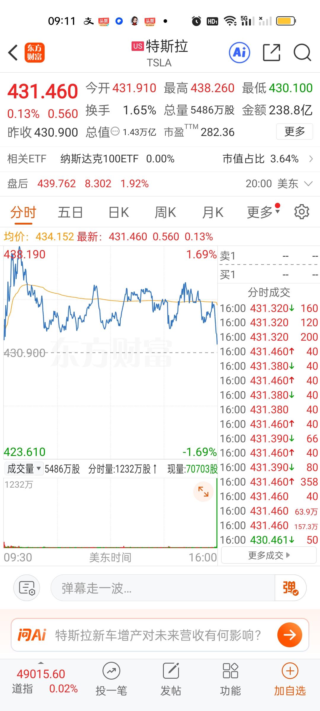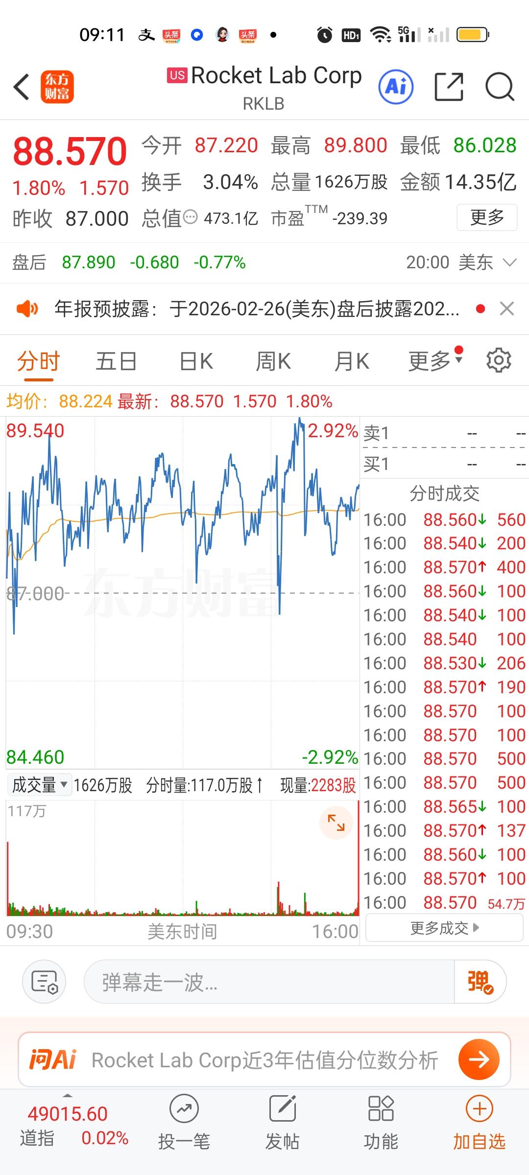 美股商业航天板块的个股前天收盘涨得还算可以,但我们没有跟,昨晚其实也涨的不错,特别是这个美国卫星通信公司昨天收盘涨6.26%,今天收盘涨8.88%,但火箭实验室昨天收盘涨8.10%,今天收盘只涨了1.80%。另外英伟达和特斯拉只是微涨的状态。就涨了一点点。