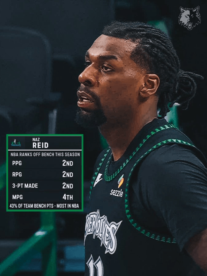 森林狼官官方发推晒出了纳兹-里德的几项数据并写道:“最佳第六人”