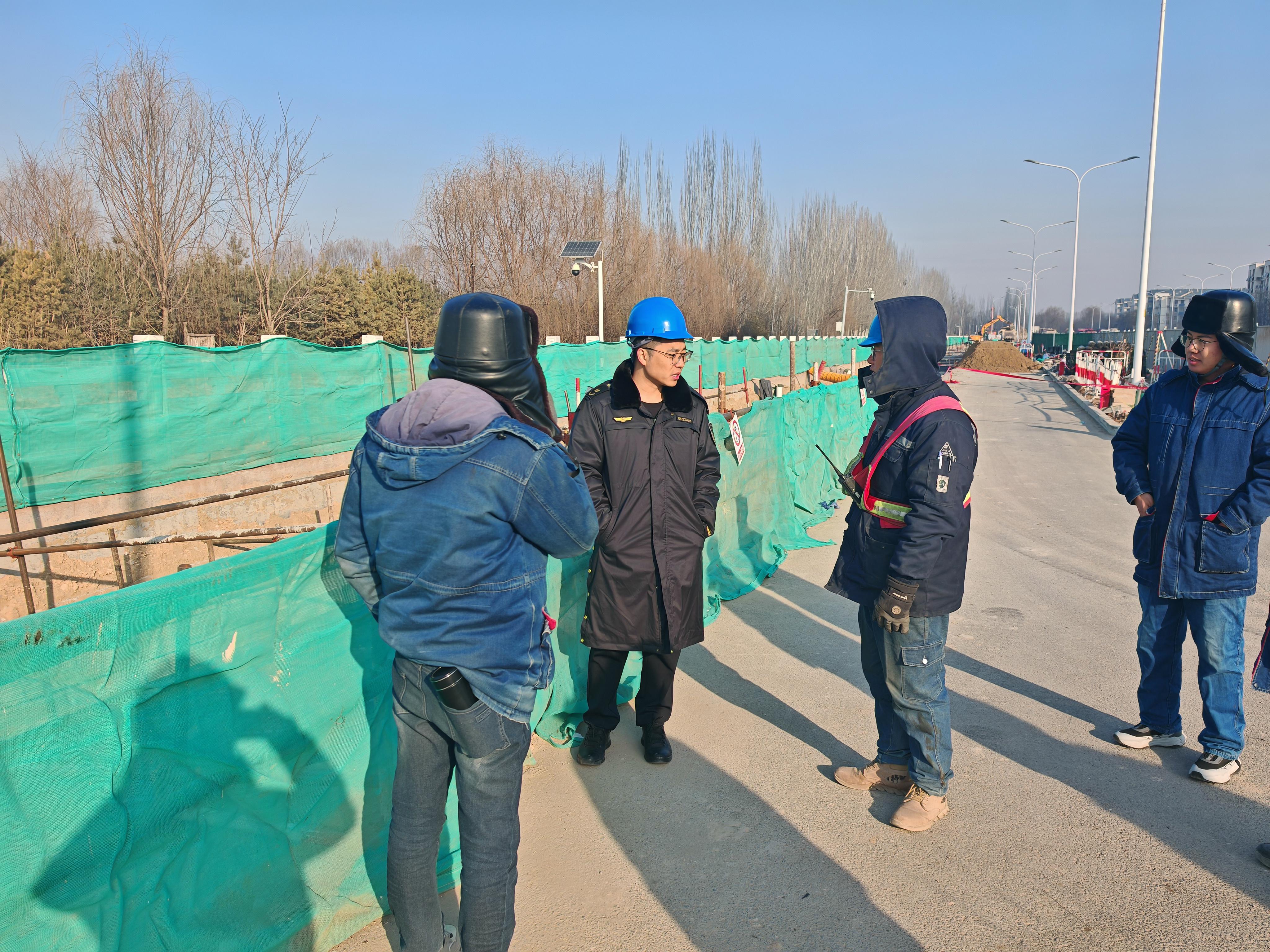 二是狠抓源头治理,从严落实扬尘污染防控。一方面加强对冬季施工建筑工地扬尘管控情况的巡查督查,确保各项防尘措施执行到位。另一方面常态化开展辖区裸露空地摸排,及时督促属地管理单位对裸露土方进行全面苫盖。针对套门沟非煤矿山企业,执法人员专项检查其扬尘管控措施落实情况,明确要求企业加强日常管理,完善物料堆场苫盖,并在低温时段持续实施洒水上冻等抑尘作业。