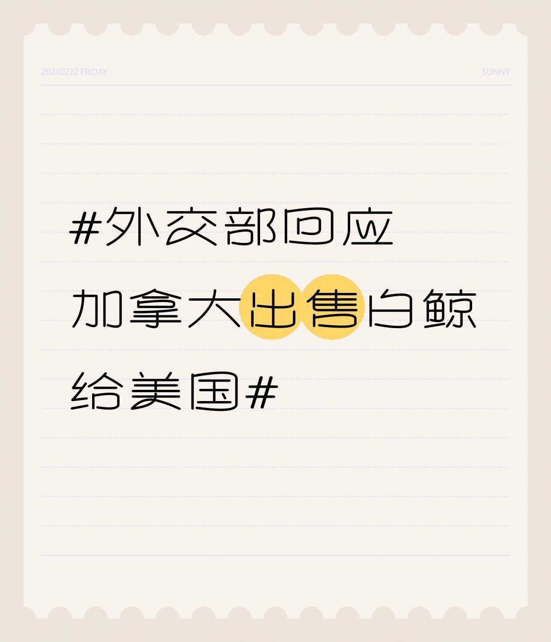 外交部回应加拿大出售白鲸给美国 外交部回应加拿大出售白鲸给美国这事儿还挺值得说道的。动物保护一直是全球关注的话题,白鲸这种可爱又聪明的海洋生物,它们的生存状况备受瞩目。加拿大把白鲸卖给美国,这背后可能涉及商业利益,但也引发了动物保护组织和很多人的不满。 外交部的回应应该会综合考虑到动物福利以及国际关系等多方面因素。如果只是单纯为了商业利益而忽视白鲸的生存环境和权益,那肯定是不合适的。希望相关国家能重视动物保护,别让这些可爱的生灵成为利益的牺牲品,也期待外交部能给出公正且有影响力的回应。