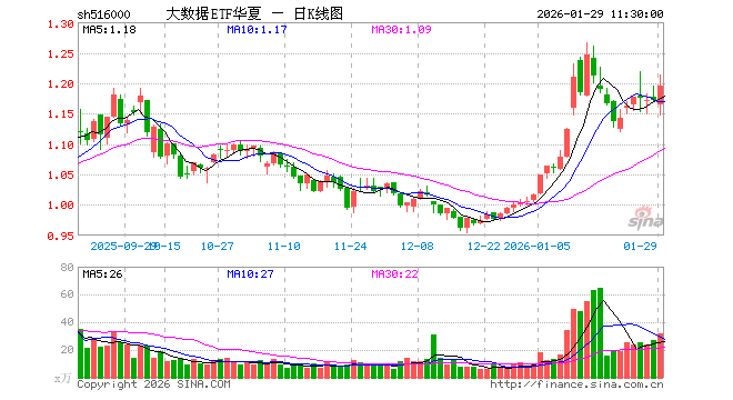 1月29日,截止午间收盘,大数据ETF华夏(516000)涨2.05%,报1.196元,成交额3744.29万元。大数据ETF华夏(516000)重仓股方面,科大讯飞截止午盘涨10.00%,中科曙光跌0.78%,浪潮信息跌2.00%,紫光股份涨0.08%,恒生电子跌0.50%,润泽科技涨1.45%,拓维信息涨0.57%,深信服跌0.64%,中国长城涨0.30%,用友网络涨2.31%。
