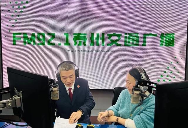 近日,泰州市人民检察院第五检察部主任丁建玮应邀做客泰州交通广播节目《下班万岁》,与电台主持人刘耀一同通过电波,向社会公众介绍2024年以来全市检察机关助力优化法治化营商环境工作情况,接受社会各界监督。