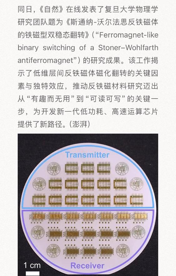 芯片革命一夜引爆!1月29日凌晨0点,全球科学界被中国“偷袭”! 1月29日0点,复旦大学两支团队同时登上国际顶级期刊《自然》——不是一篇,是两篇!硬核科技刷屏全球。 “青鸟”飞天——全球首个抗辐射、超低功耗原子层半导体通信系统,把《复旦大学校歌》送进太空! 反铁磁体“觉醒”——曾被嘲只能看不能用的神秘材料,被复旦团队首次实现稳定读写控制! 先说“青鸟”系统,简单说,就是给咱们的卫星穿了件“金钟罩铁布衫”,再也不怕宇宙里的射线干扰了。 以前咱们的卫星,还有国外的卫星,在太空里都得提心吊胆,宇宙射线跟子弹似的,打在卫星的电子器件上,轻则出故障,重则直接报废,而且坏了还没法修。 就像之前北斗卫星刚开始研发的时候,宇航CPU全靠进口,人家卡咱们脖子,漫天要价,还不保证抗辐射性能。后 来咱们航天772所花了10年,才造出国产抗辐射CPU,北斗卫星才算用上了“中国芯”,但那时候的技术,还是靠加固电路、加屏蔽层,重量大、功耗也高。 可这次复旦团队搞的“青鸟”,完全是另一个路子——用原子那么薄的半导体材料,天生就抗辐射,而且功耗还不到传统系统的五分之一。 他们把这套系统装在“复旦一号”卫星上,还把《复旦大学校歌》送进了太空,传输回来的信号一点毛病没有,在轨运行9个月,误码率低到可以忽略不计,就算在辐射更厉害的轨道上,理论寿命都能到271年! 这意味着啥?以后咱们的卫星,不管是搞通信、搞探测,还是跟国外的星链竞争,都有了硬核底牌,再也不用怕宇宙射线捣乱,也不用看别人脸色要技术、买零件了。 以前美国总说他们的星链多厉害,现在咱们有了“青鸟”,相当于手里多了一把“王炸” 再说另一个突破,反铁磁体“觉醒”。 简单说,就是一种特殊的磁性材料,电子自旋方向相反,不像普通磁铁那样有磁性,却能让电子跑得飞快,而且不耗电。 以前手机芯片,就算关机待机,也会偷偷耗电,运算速度也有天花板,AI芯片更是因为功耗和速度问题,一直突破不了瓶颈。 国外不是没研究过,日本东京大学、美国约翰斯·霍普金斯大学的团队,早几年就盯着反铁磁体,想搞出稳定的读写技术,结果折腾了半天,要么信号太弱,要么不稳定,始终没突破。 可复旦团队把这事干成了,首次实现了反铁磁体的稳定读写控制! 这意味着以后手机芯片,可能实现零待机耗电,充一次电用几天都不是事儿;运算速度能翻十倍,打开APP、玩游戏,再也不会卡;更关键的是,AI硬件的瓶颈被彻底打破了,不管是大数据处理,还是自动驾驶、智能机器人,都能迎来质的飞跃。 可能有人会说,这些都是实验室里的成果,能不能产业化还不一定。 这话有道理,但复旦这两个突破,可不是纸上谈兵。“青鸟”系统已经在卫星上完成了在轨验证,技术成熟度很高,很快就能应用到商业航天、深空探测上;反铁磁体的突破,虽然离量产还有一段时间,但至少咱们掌握了核心技术,不用再受制于人。 而且咱们有成功的先例,北斗卫星的国产CPU,从实验室到批量应用,也就用了10年时间,现在不仅满足国内需求,还出口到国外。 所以说,这些突破从实验室走到生产线,只是时间问题,而且这个时间不会太长。 以前总有人崇洋媚外,说中国的科技都是抄来的,说咱们没有原创性突破,可事实呢?这次复旦两支团队同时登《自然》,就是最好的证明。全 球顶级期刊,不是你想上就能上的,尤其是同一所大学的两个团队,同一天发表两篇硬核论文,这在全世界都少见! 这背后,是无数科研人员默默付出的结果,他们耐住寂寞,顶住压力,不图名不图利,就想让中国的科技强大起来,让咱们不再被别人卡脖子。 反观国外,这些年一直在科技领域搞垄断、搞封锁,又是限制芯片出口,又是禁止技术合作,总想把咱们困在低端制造领域。 可他们忘了,中国人最擅长的就是在困境中突围,你越卡我,我越要搞出来,而且要搞得比你更好。 以前咱们造不出原子弹,被别人核讹诈,结果咱们用了几年时间,就造出了原子弹、氢弹;以前咱们造不出高铁,引进国外技术被漫天要价,结果现在咱们的高铁技术世界领先,还出口到全球几十个国家。 现在芯片和航天领域,咱们又实现了重大突破,这说明什么? 说明中国的科技实力,已经到了厚积薄发的阶段,再也不是以前那个只能跟在别人后面跑的国家了。 说到底,中国的科技进步,从来不是靠运气,也不是靠别人施舍,而是靠一代又一代科研人员的辛勤付出,靠国家的大力支持,靠全国人民的共同努力。 这次复旦团队的突破,只是一个开始,相信在不久的将来,还会有更多的中国科技成果刷屏全球,还会有更多的“中国芯”“中国造”走向世界。 那些曾经嘲笑咱们、封锁咱们的国家,迟早会明白,想要遏制中国的发展,根本就是痴心妄想! 中国的科技崛起,势不可挡!