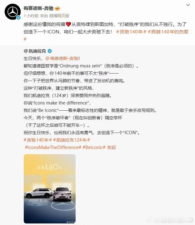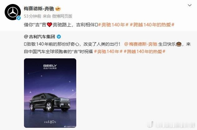 众车企为奔驰庆生今天,梅赛德斯-奔驰迎来140周年纪念日,全球多家车企纷纷制作专属海报并发文祝贺,致敬这位“汽车发明者”!多少人的梦想之车是大奔!!