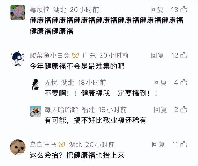 在微博、小红书等平台,相关话题迅速升温。“健康福什么时候上线”等热帖引发广泛讨论,“健康福来了吗”这一话题更是冲上微博热搜。一条“什么福都行,但最想要一张‘健康福’,送给自己和家人”的留言引发广泛共鸣,收获了高赞。