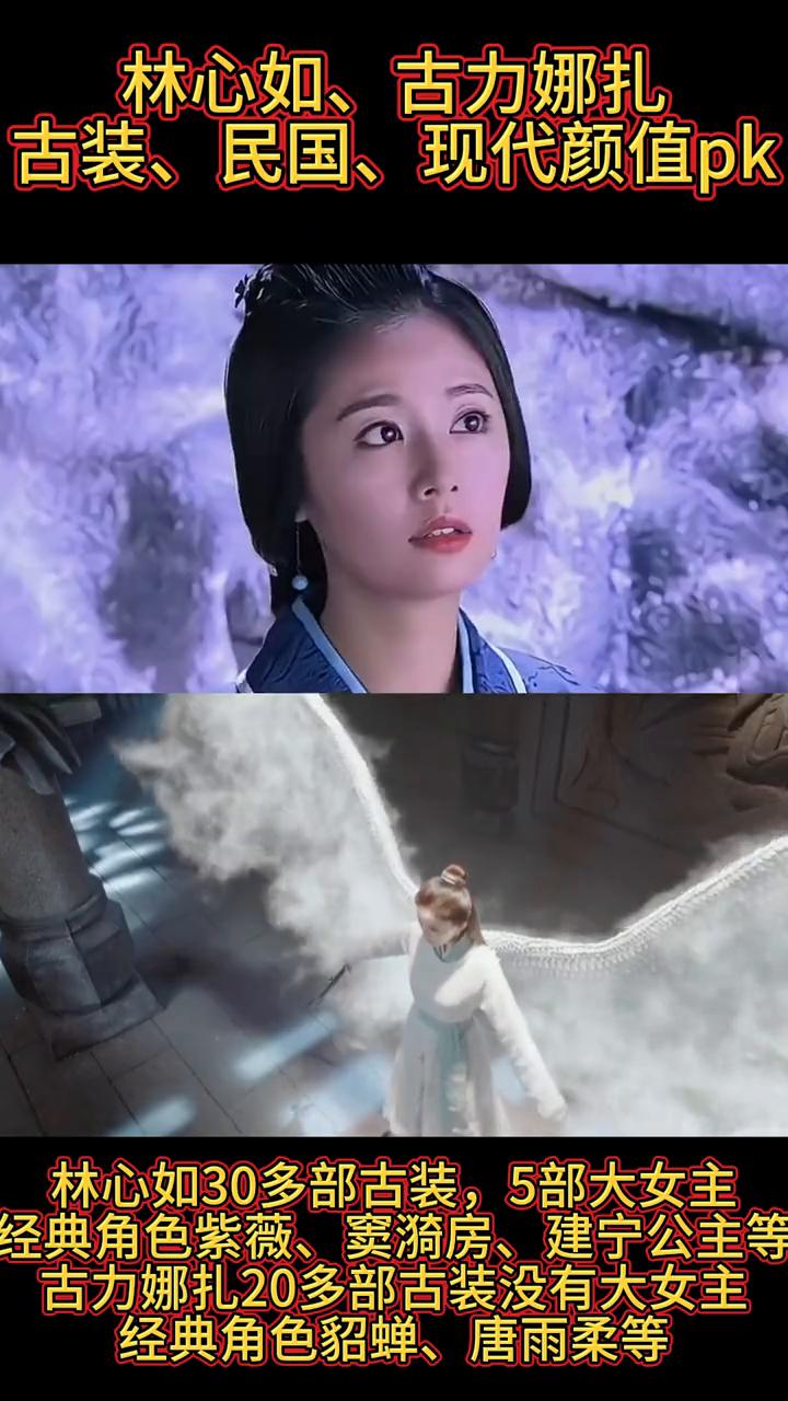 林心如、古力娜扎古装、民国、现代颜值pk。 ·林心如30多部古装,5部大女主,经典角色紫薇、窦漪房、建宁公主等。 ·古力娜扎20多部古装没有大女主,经典角色貂蝉、唐雨柔等。 ·林心如10多部民国剧5部大女主,代表作半生缘、情深深雨蒙蒙。 ·古力娜扎几部民国剧没有大女主,代表作男才女貌、地下铁等。 ·古力娜扎20多部现代剧没有大女主,代表作柠檬初上、恋恋红尘等。