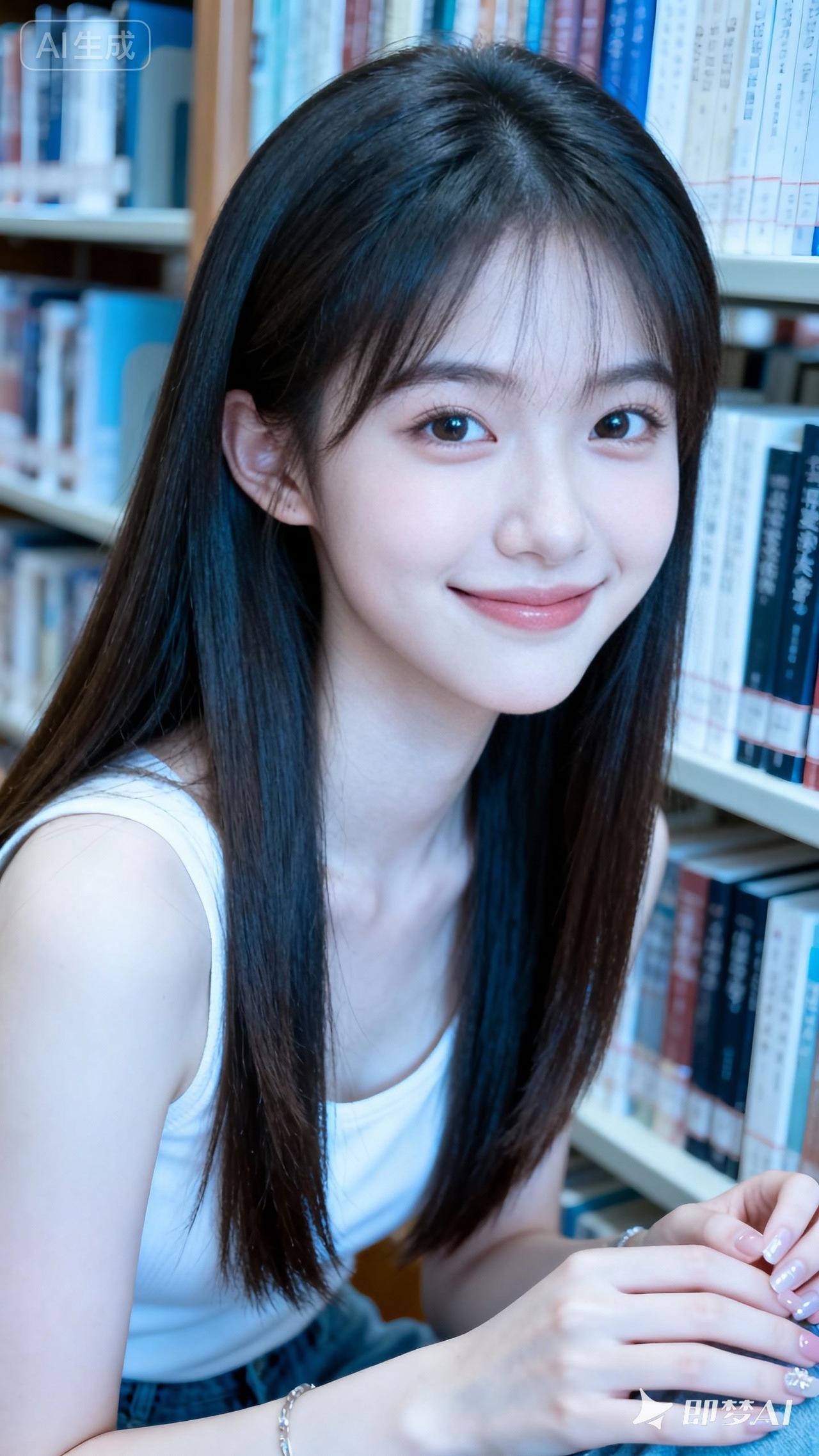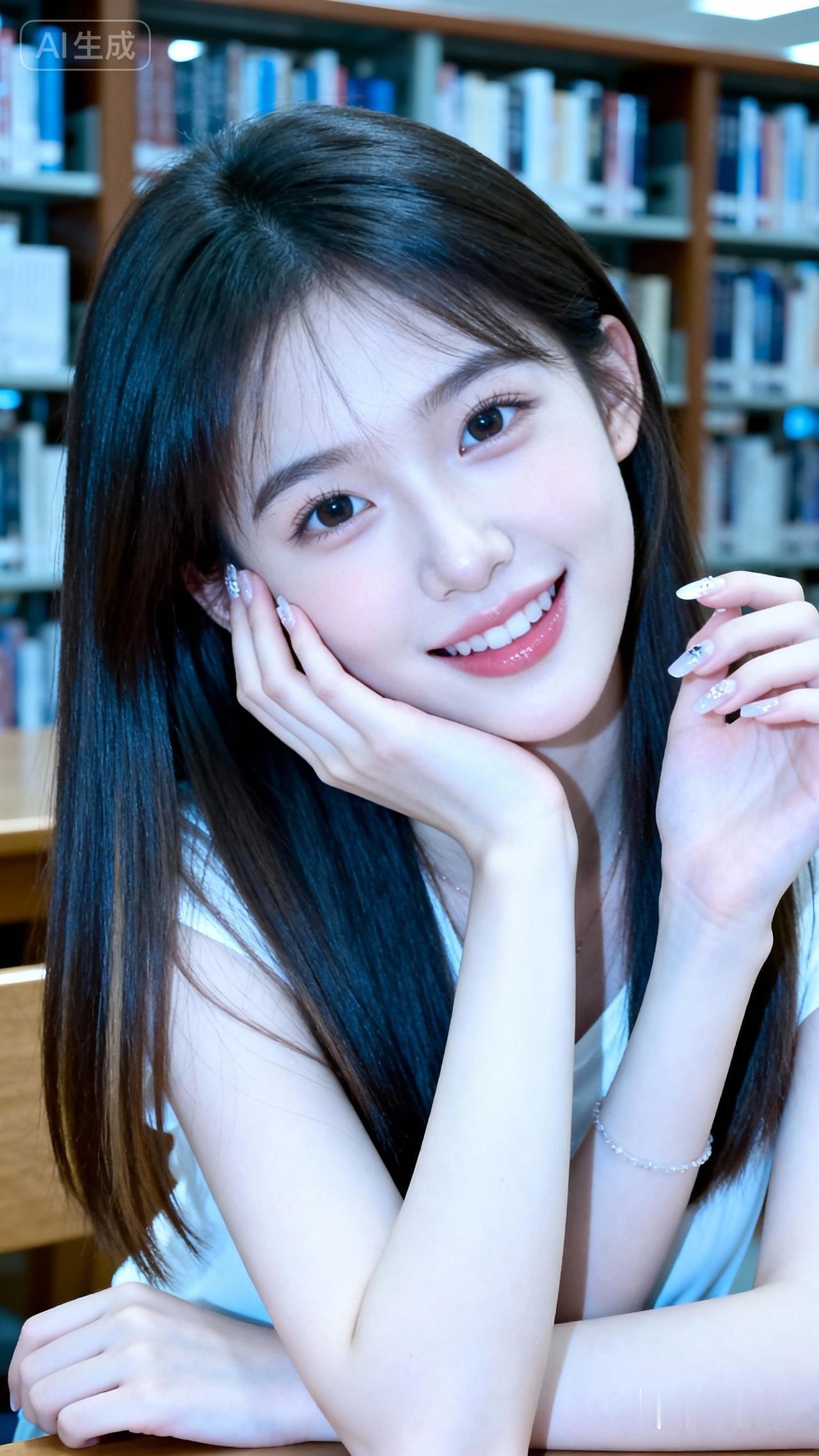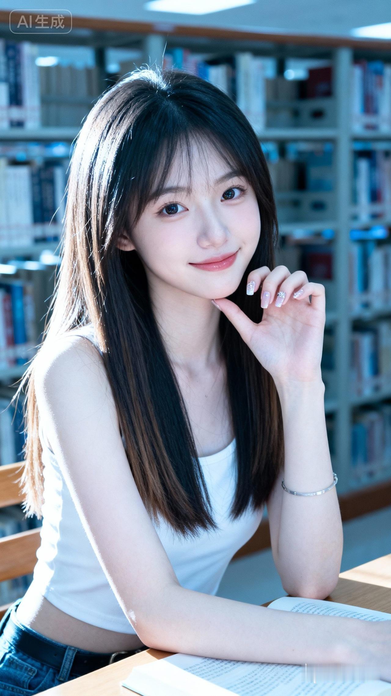 图书馆里的甜美少女,指尖轻触脸颊,书香气息扑面而来。📚💕
