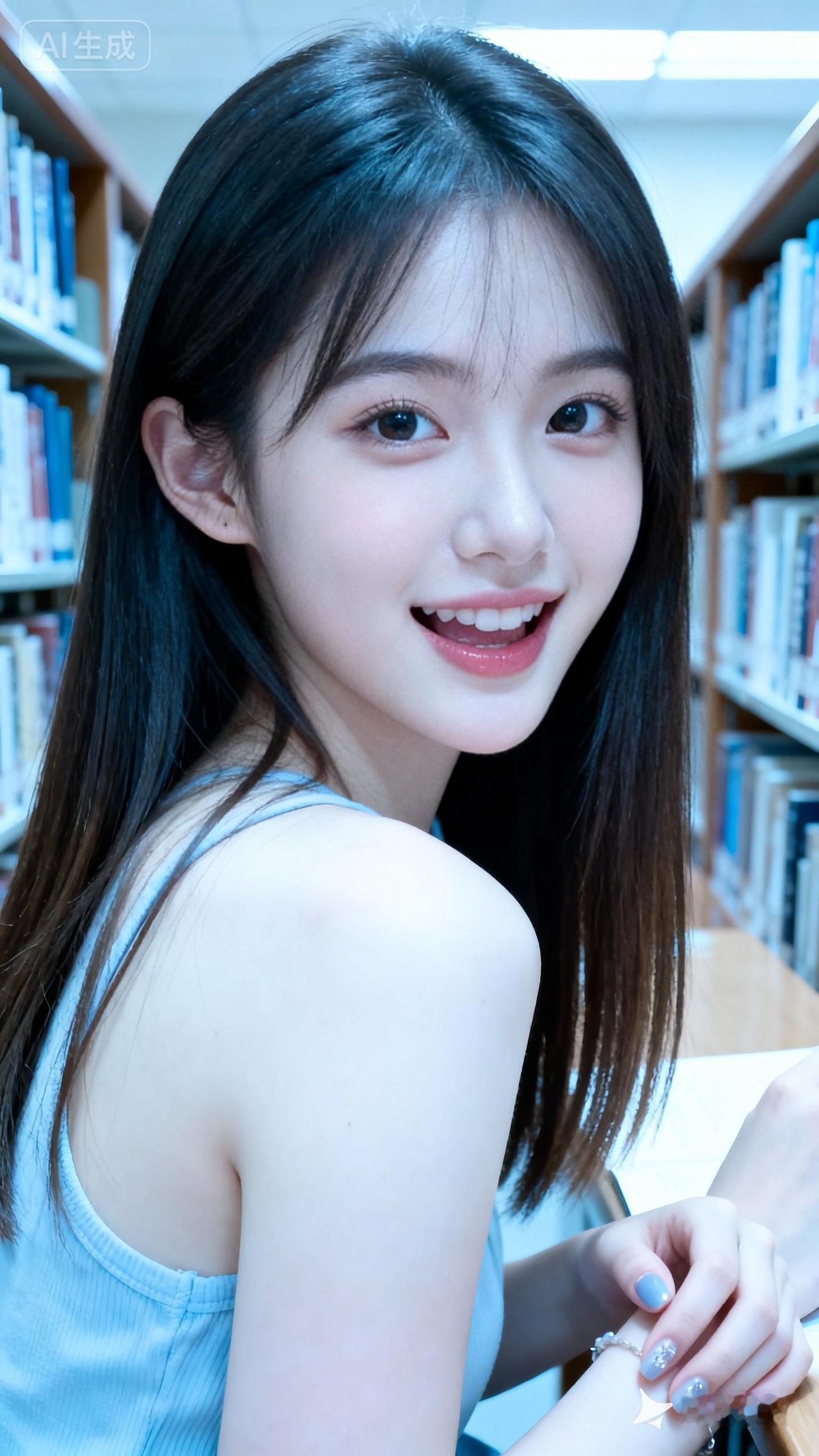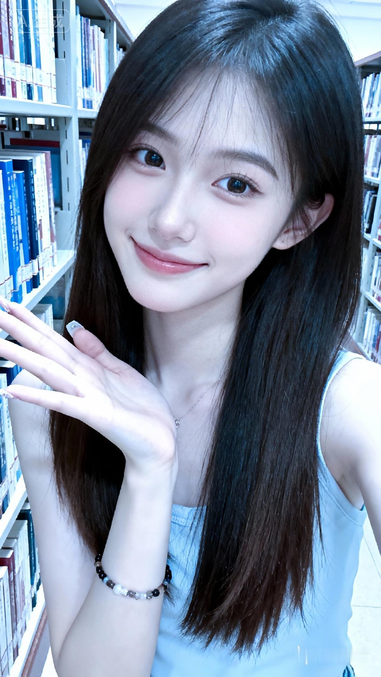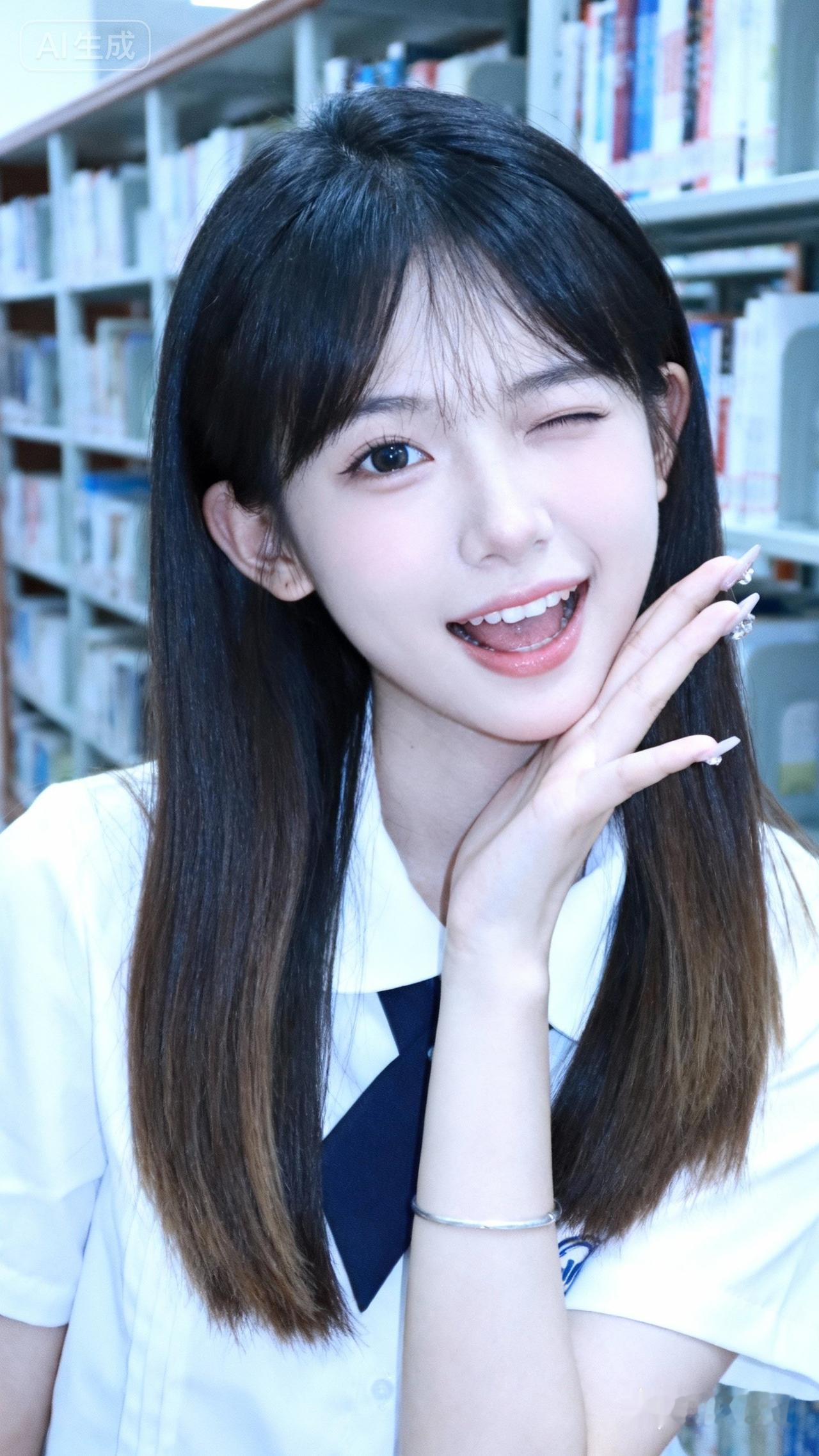 图书馆里的甜美少女,指尖轻触脸颊,书香气息扑面而来。📚💕