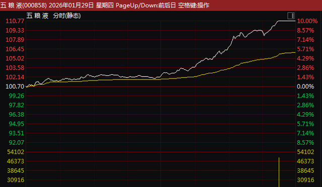 市场热点方面,午后大盘蓝筹股集体异动拉升,白酒股表现最为活跃,板块指数单边上扬大涨5.53%,创1年多来最大涨幅,成交较昨日激增1倍多。五粮液(000858)临近收盘最后15分钟涨停,伊力特、酒鬼酒、洋河股份、泸州老窖等超20股午后涨停。