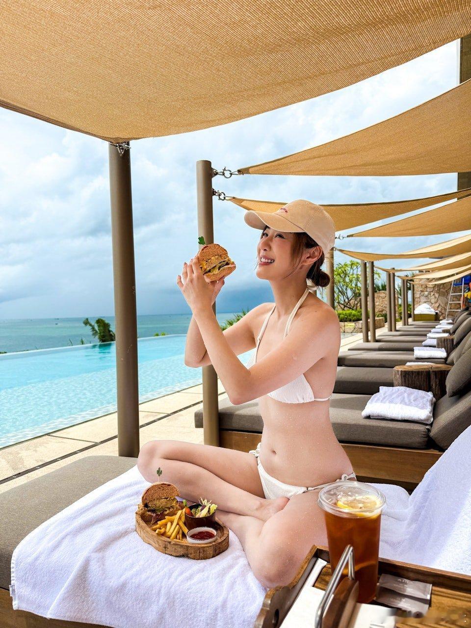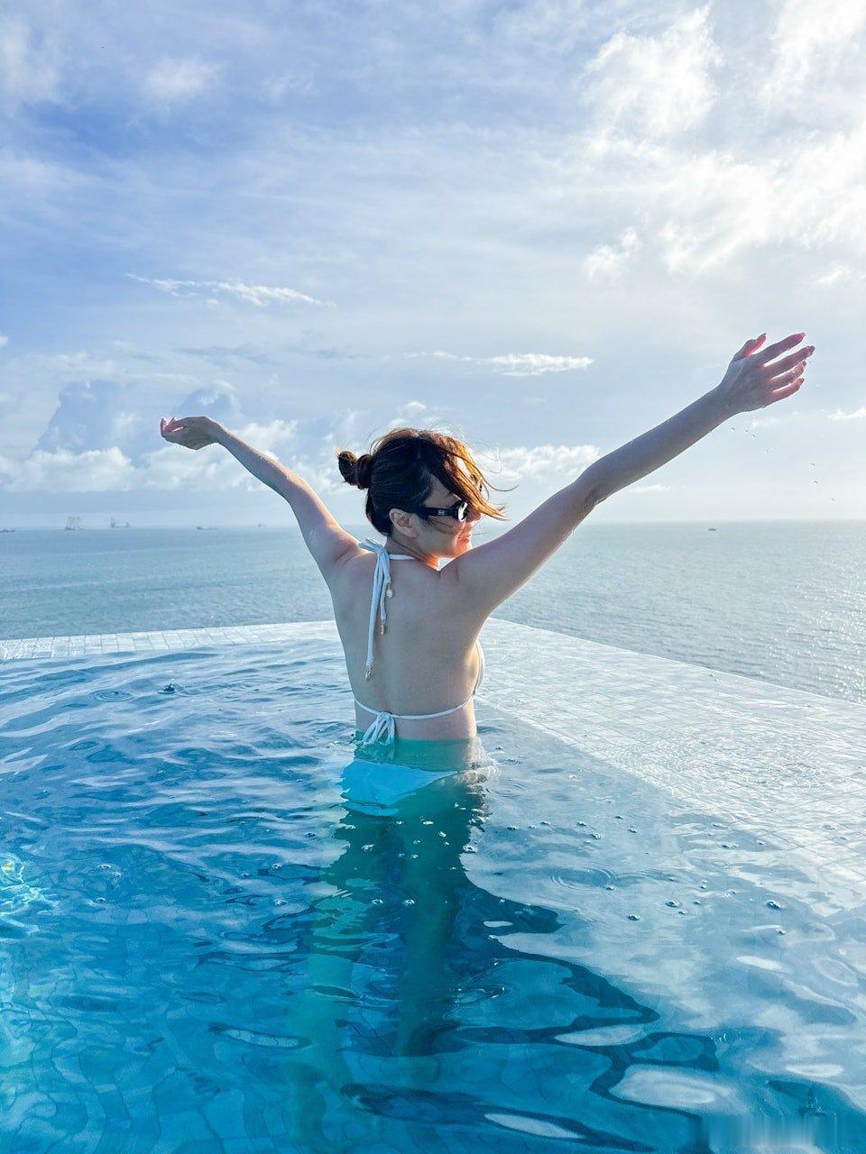 現年39歲的朱智賢曾先後參選2012年和2013年《香港小姐競選》,之後簽約無綫成為藝人正式入行,她於2023年在IG發長文宣布即將離巢無綫,結束10年賓主關係。當時她在帖文中透露:「這個決定也是挺突然的。」表明自己並非早有離開之心,而回復自由身的她,亦努力開展新工作。朱智賢曾被爆與人夫黎振燁疑「偷食」,仍獲得前男友謝東閔原諒,然而她與謝東閔拍拖8年於2024年分手。離巢後的朱智賢積極經營社交網做KOL,不時分享生活日常。昨日,朱智賢於她的IG分享多張她旅遊期間,在高級度假村泳池拍攝的性感泳裝美照和短片,留言寫道:「呢度就係之前介紹過嘅Alila,俾大家睇返佢嘅infinity pool景色 係真係一絕嘅❣️ 2日1夜perfect vacation PS: 我知而家嘅我係真係肥咗嘅 不過我都係堅持唔會戒口😝」。相中可見朱智賢穿上白色比堅尼,展現出玲瓏浮凸的驕人身材,她在池邊曬太陽享受日光浴,又在水中暢泳,相當寫意。雖然她說自己肥了,但根本就看不到她肥在那裡,身材依然Fit爆。