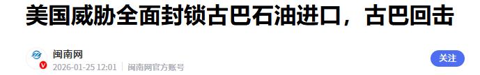 特朗普就古巴发表声明。 美国总统唐纳德・特朗普 1 月 28 日表示,在停止从委内瑞拉输送石油后,古巴已濒临崩溃。 自2026年1月3日美军突袭委内瑞拉并扣押总统马杜罗夫妇后,华盛顿便迅速切断委内瑞拉对古巴的石油输送管道。 据路透社披露,委内瑞拉曾是古巴最大的能源供应方,每日通过“能源换服务”模式向古巴输送3万桶原油,支撑其70%的发电需求和交通运输命脉。 但随着美军控制加拉加斯政权,这一持续二十余年的合作戛然而止。古巴国家统计局数据显示,自1月10日起,哈瓦那每日停电时间从8小时骤增至18小时,医院被迫用柴油发电机维持手术,食品加工厂因断电停产导致面包供应短缺,民众不得不在35摄氏度高温下排队数小时领取政府配给的饮用水。 这场危机的根源可追溯至2025年末。当时特朗普政府为巩固美洲霸权,将委内瑞拉石油储备视为关键目标。该国坐拥全球最大石油储量,却因美国长期制裁陷入产能萎缩。 2026年1月,美军以“追讨被窃资产”为由发动突袭,实际意图是掌控委内瑞拉石油出口权。美国能源部长克里斯·赖特在记者会上直言:“我们将无限期控制其销售渠道,确保每一滴油都符合美国利益。” 这种强硬姿态迅速波及古巴——作为马杜罗政权最坚定的盟友,哈瓦那不仅失去能源生命线,更因美国追加制裁陷入双重困境。 古巴的困境远不止能源短缺。自1962年美国实施全面封锁以来,这个岛国经济长期依赖外部援助。苏联解体后,委内瑞拉取代莫斯科成为主要支持者,每年提供约20亿美元资金用于医疗、教育等社会项目。 但随着查韦斯时代结束和美国制裁升级,委内瑞拉自身难保,对古援助从2019年的每日10万桶锐减至当前的3万桶。 更致命的是,美国此次行动精准打击了古巴的生存策略:通过向委内瑞拉输出医生、情报人员换取资源,这种“软实力外交”在军事干预面前彻底失效。古巴外交部声明痛斥:“华盛顿正在将加勒比变成21世纪的殖民地试验场。” 特朗普的算盘不止于古巴。1月12日,他在“真实社交”平台发布通牒,要求古巴“立即签署能源协议,否则断绝所有联系”,同时暗示将扶持亲美势力上台。 这种“胡萝卜加大棒”策略暴露出更深层野心:通过控制加勒比能源走廊,挤压中俄在该地区的影响力。此前中国在委内瑞拉投资超500亿美元建设炼油厂,俄罗斯则向马杜罗政权提供军事支持,美方此举无疑是对中俄布局的直接挑战。 然而美国的如意算盘正遭遇多重阻力。拉美多国对华盛顿的强权行径表达警惕,巴西向委内瑞拉边境增派国民警卫队,阿根廷、玻利维亚等左翼政权公开声援古巴。 更耐人寻味的是,特朗普在1月6日专机谈话中突然改口,称“不会因美洲事务影响美中关系”,并透露计划4月访华。 这种矛盾态度折射出美国战略困境:既想通过极限施压巩固后院,又忌惮中国在委内瑞拉的经济存在和国际舆论反制。中国外交部发言人毛宁的回应一针见血:“反对任何国家充当国际警察,支持古巴维护主权安全。” 古巴的命运此刻悬于一线。哈瓦那街头,民众举着“委内瑞拉是希望”的横幅抗议美军占领;马坦萨斯省,渔民冒险用小船偷运委内瑞拉走私油;政府则启动“全民节能计划”,将办公时间压缩至每日4小时。 国际货币基金组织预测,若石油供应持续中断,古巴经济将在3个月内萎缩20%,通胀率突破1000%。但迪亚斯-卡内尔总统在1月27日全国讲话中强硬表态:“我们经历过比这更黑暗的时刻,古巴永远不会向帝国主义低头。” 这场危机背后,是美国单边主义与多极化趋势的激烈碰撞。当特朗普在爱荷华州宣称“古巴即将崩溃”时,他或许忽略了两个关键变量:古巴人用六十年抗争铸就的民族韧性,以及国际社会对霸权行径日益增长的抵触情绪。 联合国安理会1月5日紧急会议上,17个国家联名谴责美国军事干预,这记响亮的耳光,或许比任何经济数据更能说明问题。 那么,对于这件事,大家有什么看法?欢迎大家在评论区进行讨论。