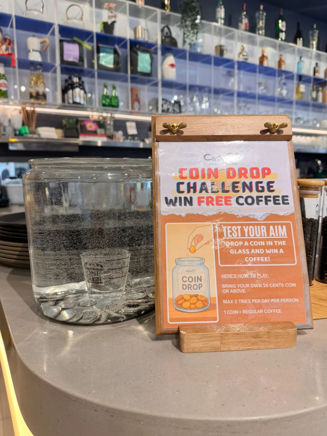 🌟它们家有个很酷的小游戏,只要硬币投进水缸中间的水杯里可以免费🆓获得一杯咖啡(图1️⃣5️⃣)