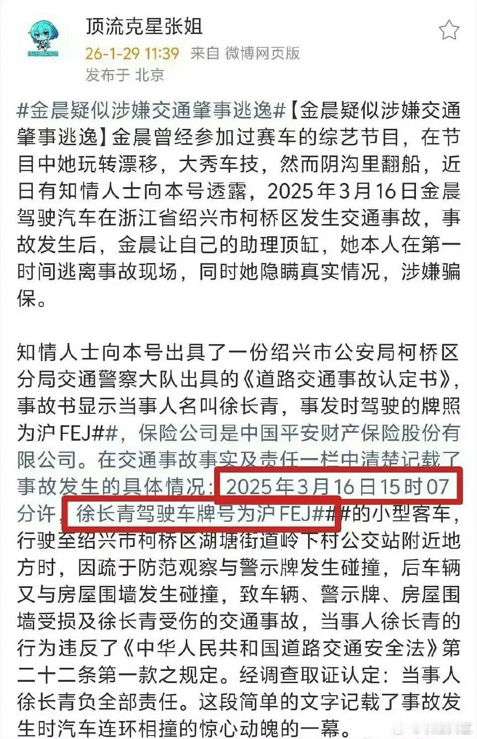 曝金晨交通事故监控截图网友们争论点很奇特说金晨为啥自己要开车?这是大G呀坐不如开呀!那煮水声排气一响胳膊肘往窗沿一搭谁能抵挡住诱惑呀曝金晨肇事逃逸肇事逃逸是原则问题,跑不掉的 延吉