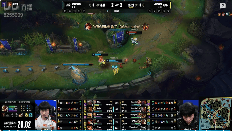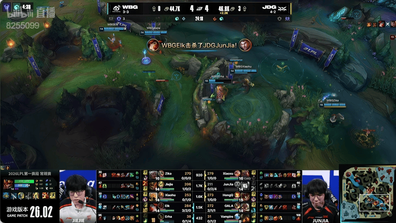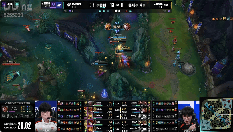 虎扑01月29日讯WBG蓝色方,JDG红色方