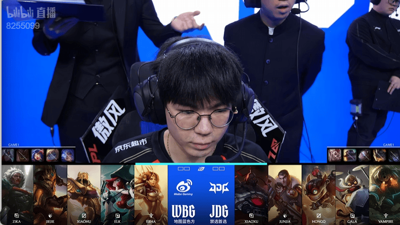 JDG选用:Xiaoxu塞恩,Junjia杰斯,HongQ炸弹人,GALA飞机,Vampire泰坦