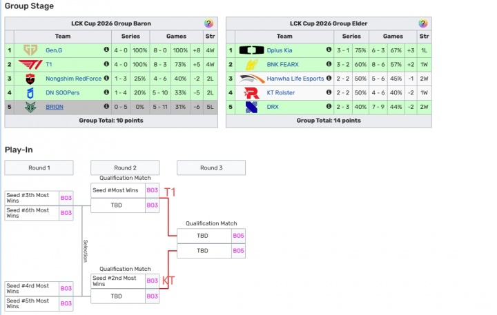 若明日NSvsKT的比赛中,KT击败NS则远古龙组的积分达到16分,即使后续T1战胜DK、GEN击败HLE,大龙组总分也无法超越且T1因小分劣势排名第二,所以远古龙组成为胜者组;DK和BFX直通LCKCUP季后赛的第二轮;而大龙组则成为败者组BRO直接被淘汰,T1将以5胜0负的战绩要去打季后赛入围赛;并且即使T1从入围赛杀出,也需要和GEN从季后赛第一轮开始打起。