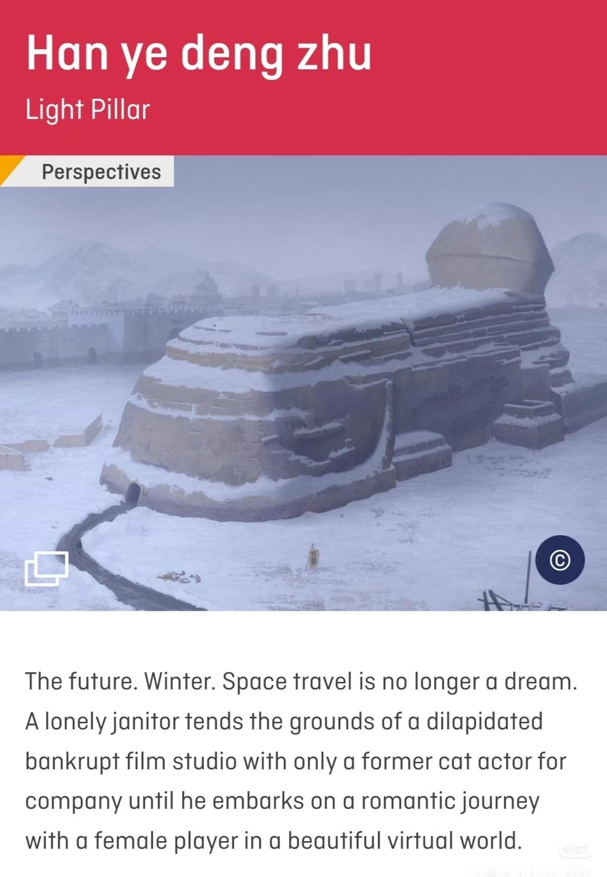 大鹏配音动画电影入围柏林电影节第76届柏林电影节今日宣布,由徐澡执导,大鹏参与配音动画电影新作《寒夜灯柱》补录入围本届柏林电影节视角单元。影片讲述了未来的某个冬天,中国北方一个几近荒废的影视城,母胎solo的影视城保洁员老查生性孤僻, 只有一只流浪猫和他相依为命。影视城濒临倒闭,他得到一个vr设备抵工资,老查来到虚拟世界,对他来说,仿佛打开了新世界的大门。