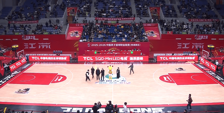 中场休息期间,江苏男篮邀请江苏省广西商会代办上台发言,并对庞峥麟送上祝福。