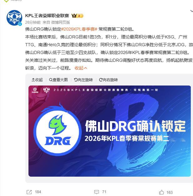 佛山DRG一胜三负锁定第二轮B组,这是曾经的S组常客首次跌入B组,队内虽有问题待