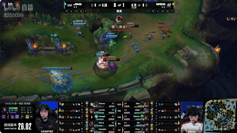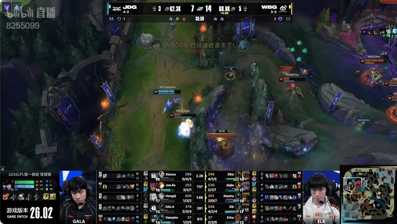 WBG红色方,JDG蓝色方