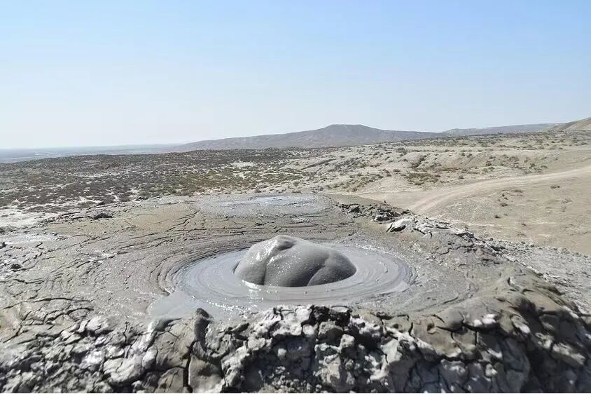 如果你觉得喷火还不够奇幻,那阿塞拜疆的泥火山定会让你惊叹大自然的脑洞。全球约800座泥火山中,有近一半坐落在阿塞拜疆境内。它们不像岩浆火山那样暴烈喷发,而是像一个个巨大的“灰色果冻”,不紧不慢地吐着泥泡。