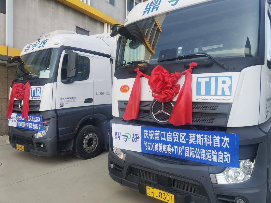 1月29日,2辆满载货品的国际公路运输车辆,经营口海关办结全部通关手续后,从营口国际快件监管中心驶出,一路向北直抵俄罗斯莫斯科,成为我省首票“9610+TIR”(跨境电商+国际公路运输)出口业务。