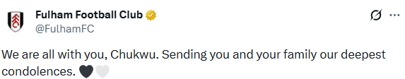 富勒姆和尼日利亚国家队社媒向丘库埃泽母亲离世表示哀悼