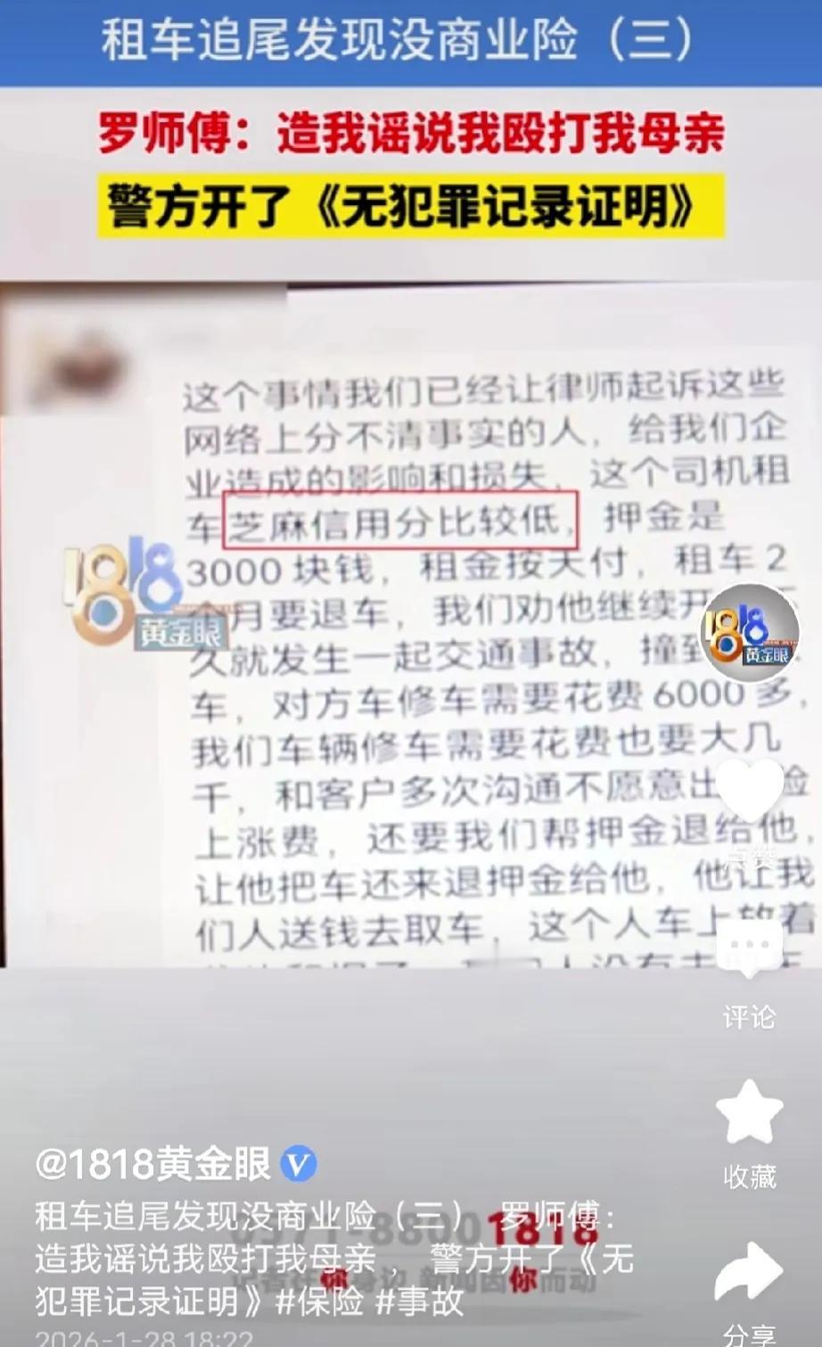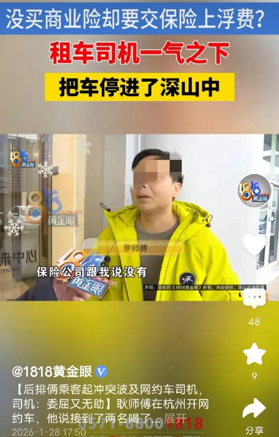 真解气!浙江杭州,网约车司机不慎追尾,交警认定他全责,谁料,他给保险公司打电话,才知道租赁公司没交商业险,男子又联系租赁公司,没想到,对方偷偷赔偿被撞车辆后,要求男子交2000元保险上浮费,男子懵了,跟租赁公司讨说法,可接下来租赁公司的做法气得男子直接把车子开到深山老林,并用钢筋和胶水固定住。网友:太解气。 2025年9月份,罗师傅跟杭州某租赁公司租了一辆出租车跑网约车,当时交了3000块钱的押金。 租下车子后,罗师傅就每天以跑车为主,这近半年来一切都很顺利。 但今年1月8号的时候,出了点小插曲,闹心的事也是从那时开始。 那天晚上,罗师傅着急开车去接客人,因为一个不留神,他追尾了,撞上了前方一辆车。 那车被撞得不轻,有一定的损坏度。 后来,经过交警部门认定,罗师傅负事故主要责任,经过4S店评估被撞车辆的维修费用大概7、8000左右。 而罗师傅的车子也受到了一定的损伤,大概也要几千块钱的维修费。 罗师傅以为,车子交了商业险,报完保险后,应该用不了多少钱。 谁料,他给保险公司打电话,对方却说,他开的那辆车只交交强险,并没有交商业险。 罗师傅懵了,不对啊,他租车的时候,明明已经跟租赁公司签订了合同,合同里写明他们是交了商业险的。 为了核实真实情况,罗师傅再次给保险公司打电话,他们经过认真核实,告诉罗师傅,该车在2025年9月份前就已经把商业险退了。 挂了保险公司的电话,罗师傅赶紧给租赁公司打电话,租赁公司的老板告诉罗师傅,他们原本是交的,但是9月份前为了节约成本退掉了,本想过后补交,但,给忘记了。 既然是租赁公司出的错,那一切费用就由他们来出。 没想到,过后,租赁公司背着罗师傅给被撞的车辆赔了维修费后,要求罗师傅交2000元的保险上浮费。 罗师傅认为租赁公司没有交商业险已经构成了违约,自己不追究他们的责任也就算了,他们怎么还好意思让他交2000元保险上浮费。 如果他交了这笔保险上浮费,再加上维修自己的车子,那他得损失几千块钱,所以罗师傅不愿意。 双方协商无果后,罗师傅要求租赁公司退还他3000元押金,他不租车了,可租赁公司依然不肯。 罗师傅一气之下把车开回830多公里远的老家,停到深山老林里,车子停好后,他又用钢筋胶水把汽车一角牢牢固定在泥土里。 罗师傅做完这一切后,拍视频发到抖音上,说我明天去上班了,我没有义务给你们看管这辆车。 如果车子停在这里遇到熊瞎子或者砍柴的打砸,我不管。 租赁公司工作人员刷到这个视频后,联系了当地的派出所,并很快去把车子拉回杭州。 而罗师傅把这个视频发到网上后,很多网友纷纷指责该租赁公司,甚至有网友说,在该公司租车时也有跟罗师傅一样的遭遇。他们说罗师傅这么做,真是太解气了。 租赁公司为了维护自己的名义,在视频底下留言,声称,罗师傅很坏,他刚从派出所被释放出来,他甚至还殴打过他母亲。 罗师傅看到这个评论后,很气愤,为了证明自己的清白,他到派出所开了无犯罪记录证明。 说到殴打他母亲一事,更是让他无语,因为罗师傅从8个月起,他的母亲就离家出走了,至今未归。 事后,罗师傅把这个事曝光到媒体,记者跟着他来到租赁公司。 租赁公司老板称,他希望罗师傅把视频下架了,因为这个视频发出来对他们的公司影响很大。 罗师傅说,他不会下架视频,因为他是如实描述,并没有夸大事实。而且他还要追究他们造谣他的法律责任。 租赁公司老板说他们没有造谣,他们也是听人家说的,还有录音,记者问他们录音在哪里,但是他们又拿不出来,问他们是听谁说的?他们也不出具体的人。 双方吵到报了警,民警来到后建议他们走法律途径协商解决。 后来租赁公司老板说他之所以没有交商业保险,是为了节约成本,因为空窗期如果每一辆车都交商业险,这个成本很大。 最后租赁公司老板称后期他会注意加强管理,该理赔的会理赔,该退的押金也会退。 有人说,就该狠狠收拾这个租赁公司,如果是我租车碰到押金不退的,我押金直接不要了,给他开到新疆火焰山无人区,很多这种汽车租赁公司,99.9%都是耍无赖,耍横,不退押金的。 买个交强险就敢给司机去跑车?真出了大事,这些人一个都找不到全跑了。 还有人说,还好司机没有出重大死亡事故!要不然这家公司会这样说吗?真搞笑啊 租赁公司太无赖!签合同承诺有商业险,转头就退保省成本,出事后先偷偷赔钱再甩锅要司机交上浮费,押金还不退,简直霸王操作。罗师傅被逼把车开去深山锁死,看着就解气! 更过分的是公司造谣抹黑,拿不出证据还嘴硬,还好罗师傅自证清白。 这种无良租赁公司就该曝光到底,必须退押金、担全责,不然只会坑更多司机!