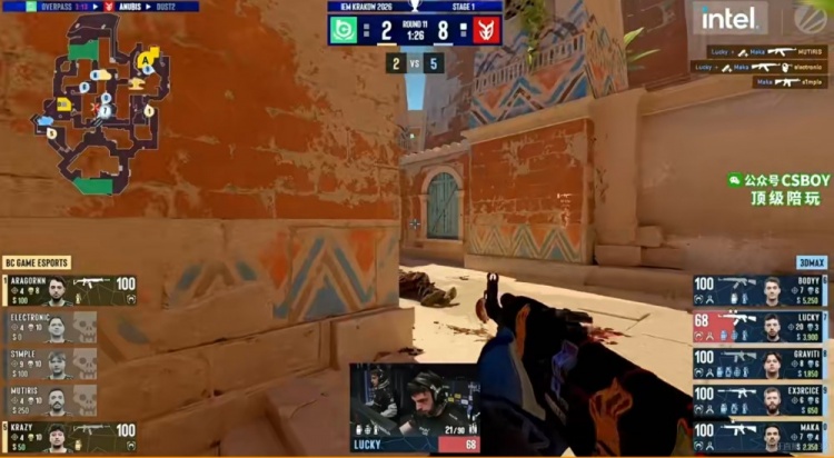 第五局Maka直接突中路烟摸死s1mple大狙,A区的aragornN站位再次失误白给!5V3的局面,3DMAX在A区下包!3DMAX一波轻松0换3结束比赛!晋级Stage2!而BC.GAME在双败赛制还有一次败者组的机会!
