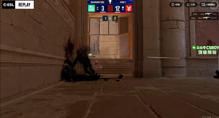 第三局aragornN在A长撞墙丢烟慢了一步直接吃了大拉,双方一波3换3之后3DMAX又在A区下包,BC双人连接回防全被bodyy接住!3-12!