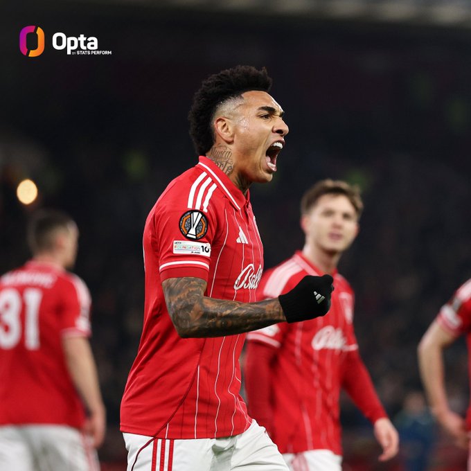 数据统计,伊戈尔-热苏斯成为诺丁汉森林队史上第二位在单赛季欧战赛事中打进5球的球员,另一位是1978/79赛季打进6球的加里-伯特尔斯。