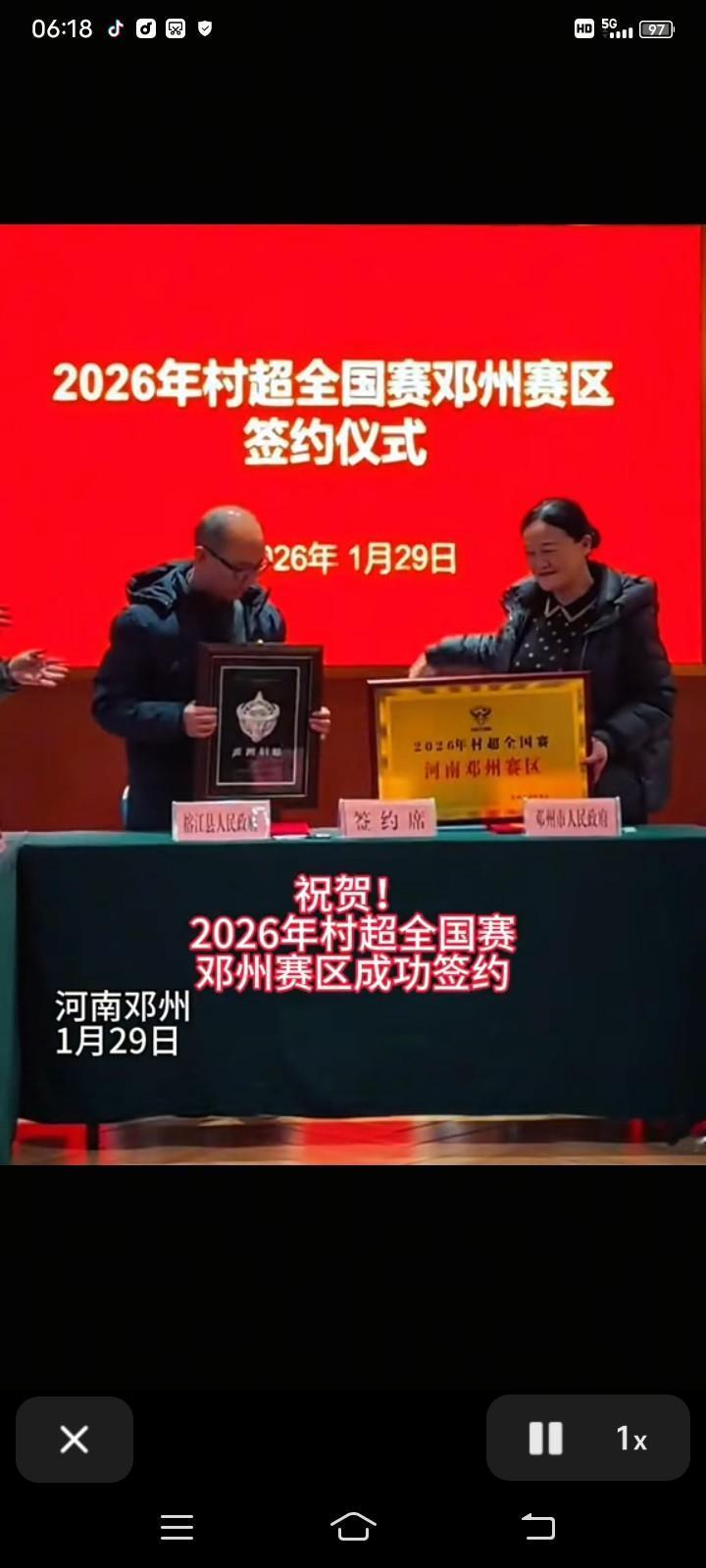 河南邓州也有全国性足球赛事啦! 1月29日,2026村超全国赛邓州赛区签约仪式在邓州举行,邓州市正式加入全国性足球赛事组织"村超联盟"。 这次成功签约,不但结束了邓州长期没有全国性足球赛事的历史,也必定为邓州发展提供新动力,更加提升了邓州作为丹江口库区区域性中心城市在全国的影响力。