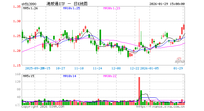 1月29日,港股通ETF(513990)涨0.63%,成交额1691.46万元。当日份额减少100.00万份,最新份额为5300.00万份,近20个交易日份额减少1500.00万份。最新资产净值计算值为6867.74万元。