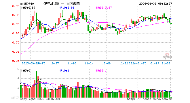 1月30日,锂电池ETF工银(159840)开盘跌0.35%,报0.855元。锂电池ETF工银(159840)重仓股方面,比亚迪开盘跌0.04%,宁德时代涨1.90%,三花智控涨0.04%,华友钴业跌3.31%,亿纬锂能涨0.00%,赣锋锂业跌1.79%,天赐材料跌0.49%,先导智能跌0.51%,国轩高科跌0.35%,厦门钨业跌4.48%。