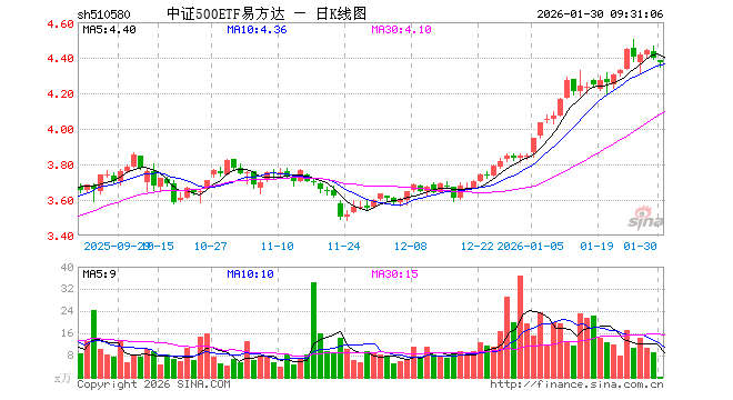 1月30日,中证500ETF易方达(510580)开盘跌0.25%,报4.384元。中证500ETF易方达(510580)重仓股方面,英维克开盘跌2.37%,信维通信涨2.37%,巨人网络跌0.50%,航天电子跌1.61%,中矿资源跌3.19%,中国卫星跌1.26%,先导智能跌0.51%,卧龙电驱跌0.71%,赤峰黄金跌8.33%,兴业银锡跌10.01%。