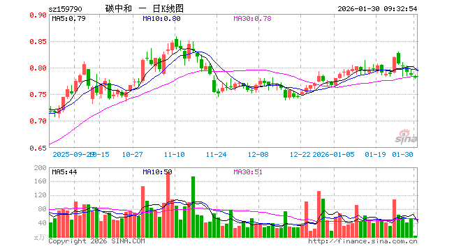 碳中和ETF(159790)业绩比较基准为中证内地低碳经济主题指数收益率,管理人为华夏基金管理有限公司,基金经理为严筱娴,成立(2021-07-30)以来回报为-21.46%,近一个月回报为1.29%。