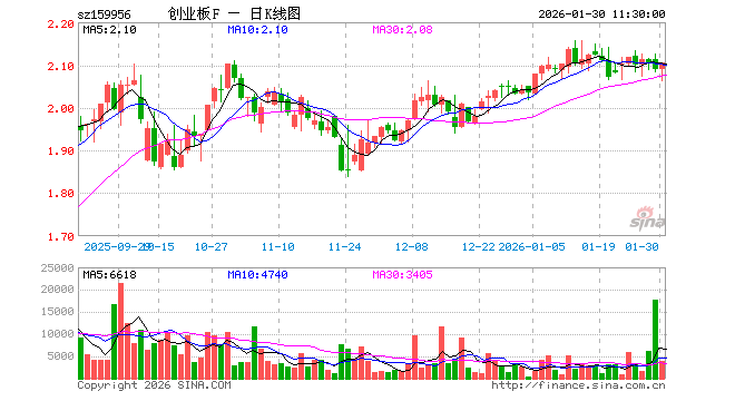 1月30日,截止午间收盘,创业板ETF建信(159956)涨0.72%,报2.105元,成交额81.32万元。创业板ETF建信(159956)重仓股方面,宁德时代截止午盘涨2.93%,中际旭创涨4.07%,新易盛涨4.40%,东方财富跌1.73%,阳光电源涨3.30%,胜宏科技涨2.25%,汇川技术跌1.42%,迈瑞医疗跌1.49%,温氏股份涨0.90%,天孚通信涨11.92%。