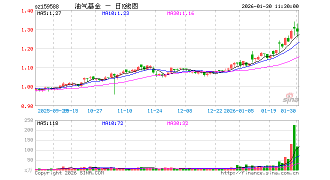 1月30日,截止午间收盘,石油天然气ETF(159588)跌1.30%,报1.286元,成交额1.50亿元。石油天然气ETF(159588)重仓股方面,中国石油截止午盘涨0.73%,中国石化涨0.62%,中国海油跌3.02%,杰瑞股份跌2.57%,广汇能源跌2.62%,招商轮船涨3.08%,新奥股份涨0.67%,九丰能源跌5.56%,中远海能跌0.45%,大众公用跌1.69%。