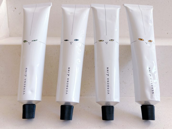 “这是多年前中秋夜我捡回来的流浪猫,‘月饼’其实就是它的名字。这一系列7款护手霜,外包装都是手绘猫头,是我和另一个小伙伴画出来的。”在义乌春晗路的VerbenaLinn品牌形象店里,每当有访客到来,黄康峰总会带着几分自豪,介绍这些从生活中汲取灵感的产品。