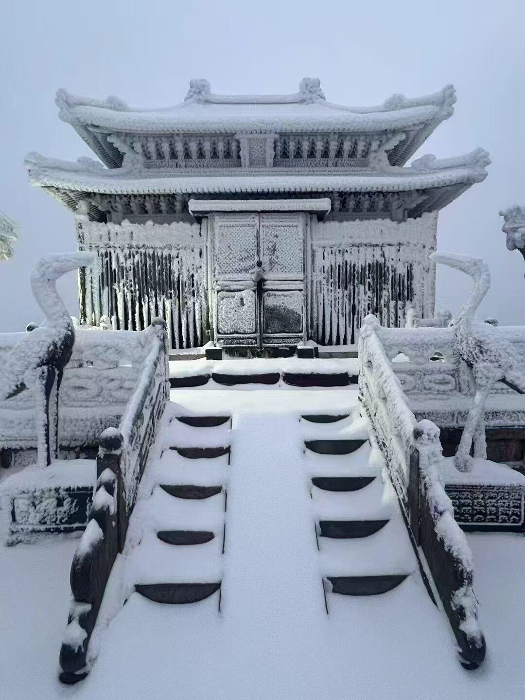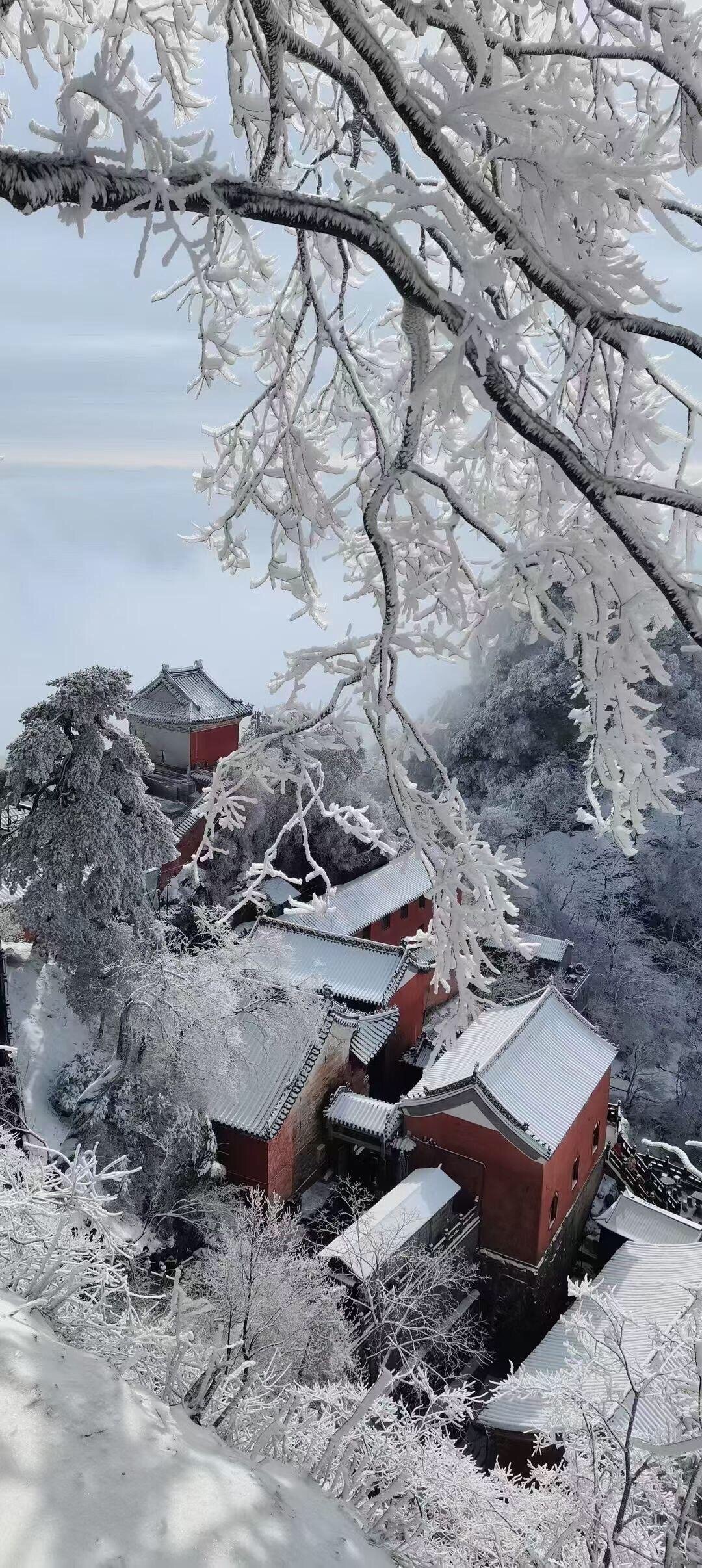 武当雪景,如诗如画。雪花纷飞间,山峦、宫观皆披素装,尽显仙山神韵。