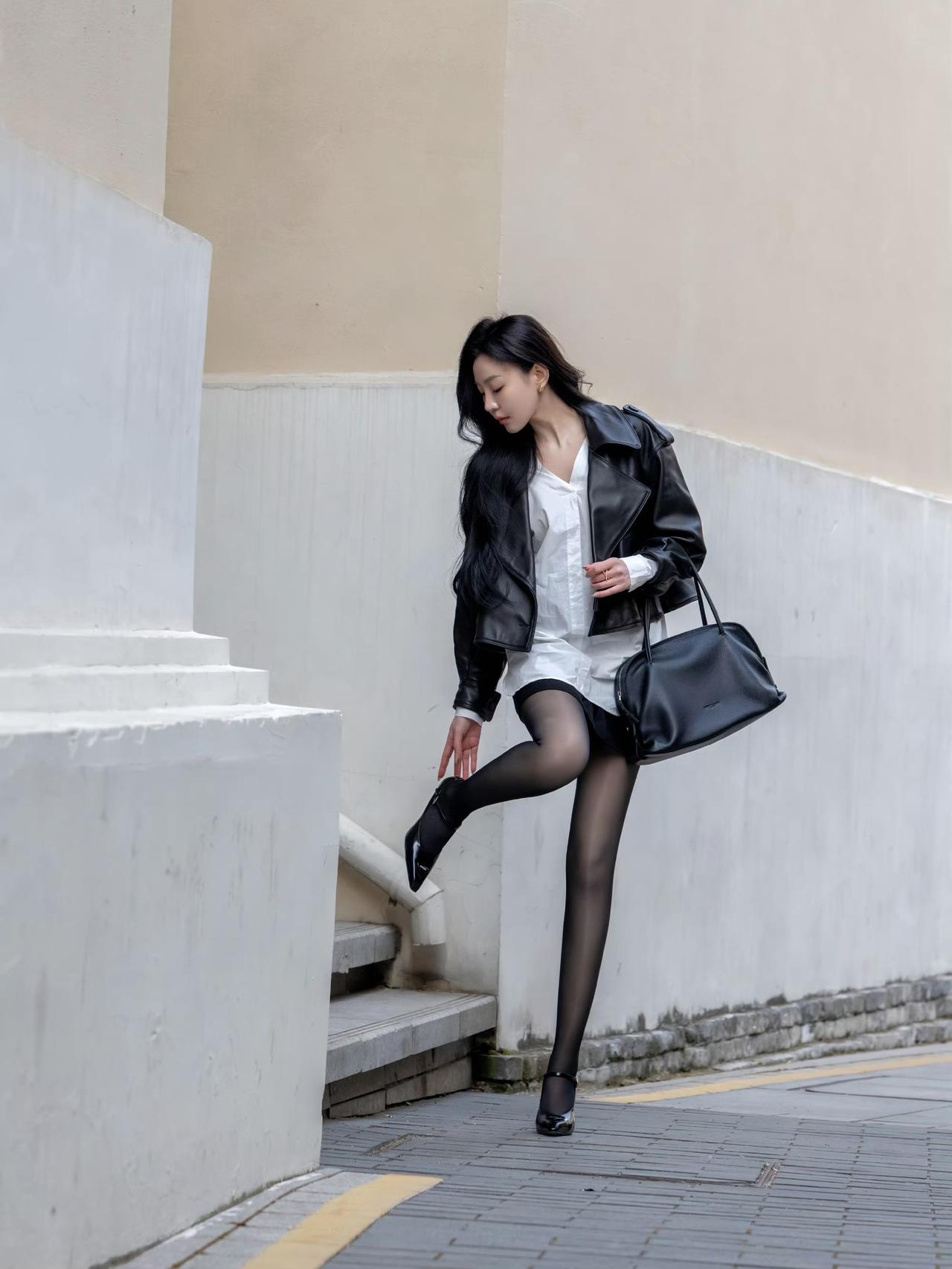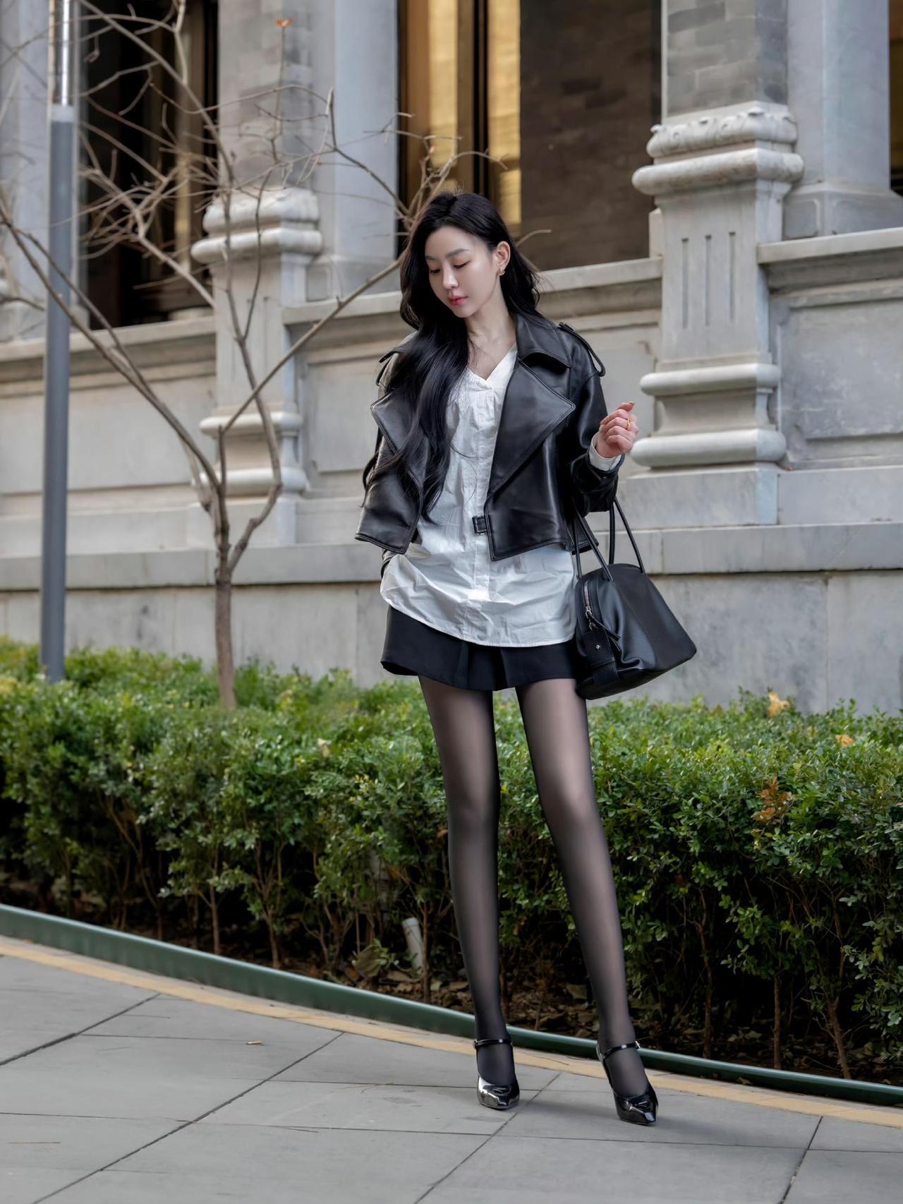这个穿搭又酷又有层次感~黑色皮衣+宽松白衬衫+短裙的组合,既能凸显利落气质,又用衬衫的松弛感中和了皮衣的硬朗,搭配高跟鞋拉长腿部线条,很适合日常出街或者轻通勤。时尚女皮衣穿搭 皮衣女穿搭 优雅自信穿搭分享 职场女性该怎么穿更好看?