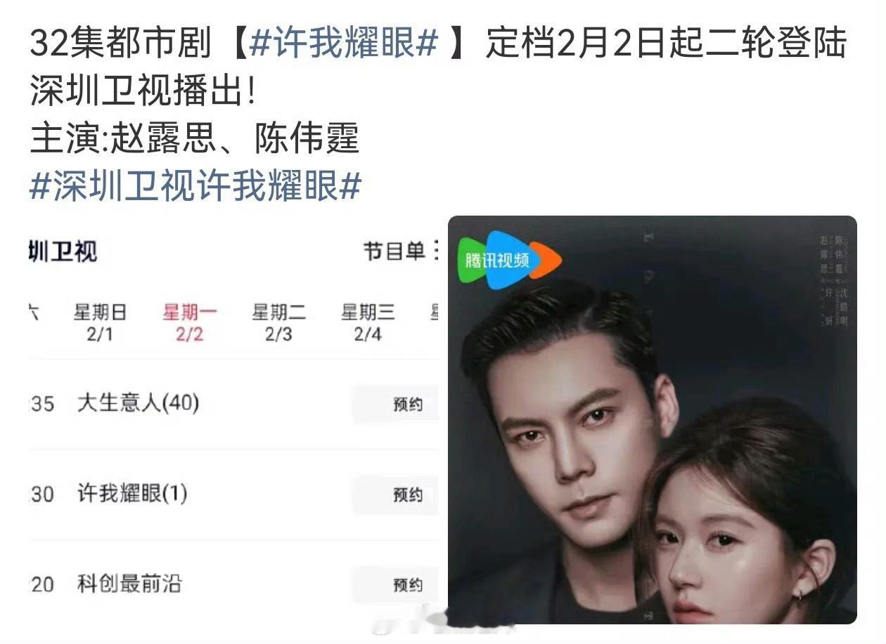 赵露思许我耀眼即将二轮上星,定档2月2日上星深圳卫视播出,又可以看许妍了!