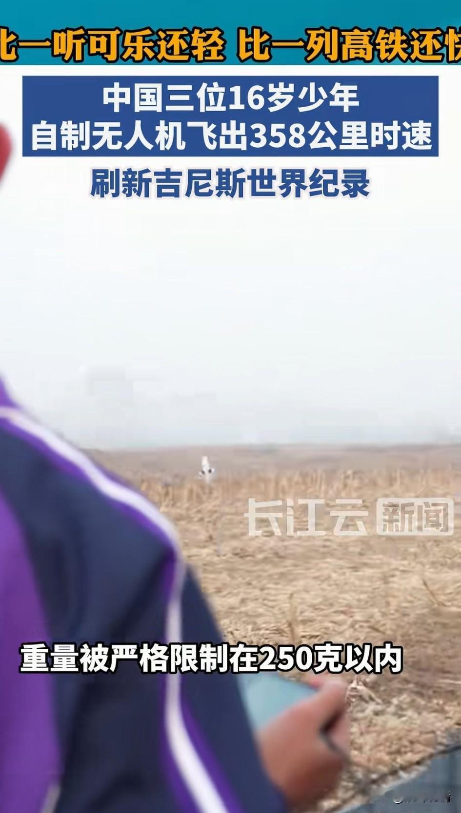 天津16岁少年再创奇迹,他们刷新了250g以下无人机飞行最快记录,荣获了吉尼斯认证! 这真的是值得高兴的事情,他们研制的这种小型无人机速度堪比高铁,速度可以达到惊人的每小时358.86km, 他们三个人志趣相投,于是组成了三人公关小组,自己制作了这个小型无人机,就像玩游戏一样! 他们直接拿下了全球第一,可以说把我国小型无人机的水平,推向了世界最先进水平, 还连接了手柄和目视仪,测试现场非常紧张,之前他们已经失败过多次,如果这一次在吉尼斯见证官的面前,他们居然成功了! 这样的无人机可以说是非常可怕的,一旦应用于战场,将无人能防,因为它的速度实在太恐怖了! 少年强则国强,还真是一点没有说错,三个人年龄才16岁,现今16岁,学生的实力真的是太恐怖了! 相信未来三人的前途不可限量,必然可以为我国的科研事业做出自己的贡献!大家觉得这三个天津学生厉害吗? 天津 全球无人机排行 最好的无人机
