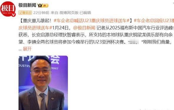 大气!车企老总宣布,国足两球员进球送车,董路:日本足球到头了 随着U23亚洲杯决赛的临近,国足与日本的这场硬碰硬的对决无疑成为了球迷关注的焦点。尤其是在比赛前,国足的准备工作引人注目。 某著名车企老总狄智睿在接受采访时,宣布了一项令人兴奋的奖励——如果国足的两名球员向余望和李镇全在决赛中进球,将分别赠送一辆豪华汽车。 这一举措不仅点燃了球迷的热情,也为国足的决赛之夜增添了不少期待。 除了外部的奖励,赛场上的国足和日本的对抗也充满了悬念。日本队虽然实力强劲,但国足的战术调整同样引人注目。 解说员苏东也在赛前分析了比赛的关键:国足需要在比赛中坚持高位逼抢,用身体对抗去扰乱日本队的节奏;同时,面对日本队高效的进攻,国足的防守和定位球的把握尤为关键。 不可忽视的是,名嘴董路也在社交媒体上为国足鼓劲,甚至直言“日本足球到头了”,这句话引发了广泛讨论。 董路显然对国足的表现充满信心,认为国足有机会通过精心布置的战术,打破日本队的强势表现,尤其是在淘汰赛中,日本队虽然击败了约旦和韩国,但并未展现出无法战胜的统治力。 而外界的关注也让这场决赛更加引人注目。 切尔西传奇门将切赫也在社交媒体上为国足门将李昊送上祝福,并称赞李昊在本届比赛中的出色表现。这不仅展示了国足在防守端的强大实力,也证明了国足在大赛中的竞争力。 但不论外界如何预测,国足能否在这场决赛中击败日本,依旧充满挑战。日本队的进攻高效,而国足的防守表现同样亮眼。 关键还是要看国足如何控制比赛节奏,尤其是在体力和战术方面,能否顶住日本队的压力。 虽然国足面临强大的对手,但只要能够在决赛中执行好战术,保持冷静的心态,就有可能实现历史性的突破,给球迷带来更大的惊喜。 球迷们的期待越来越高,国足能否夺冠,将成为众人关注的焦点。