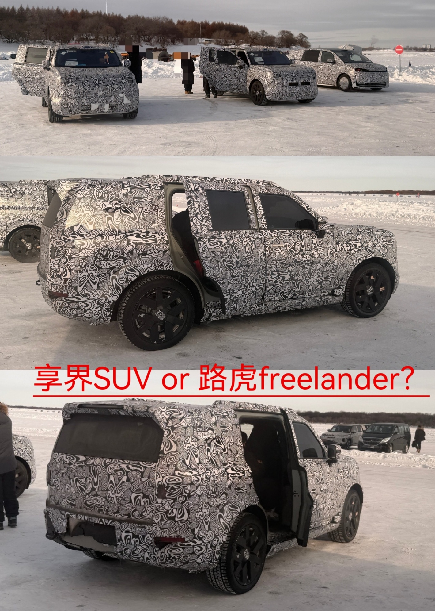 智界V9测试车旁边有一辆方盒子SUV测试车,到底是享界的SUV,还是路虎Freelander?伪装布和S9T测试车的基本是一样的,但和Freelander也有点像,好难猜。但我又细看了后视镜的区别,感觉应该是享界的SUV