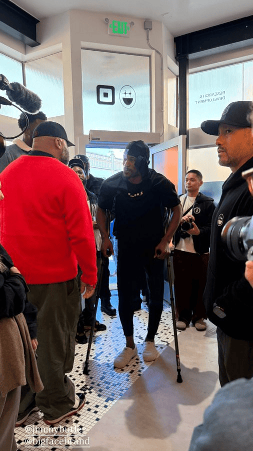 吉米-巴特勒今日在BigFace开业街区派对上首次公开露面,此前他遭遇了十字韧带撕裂。
