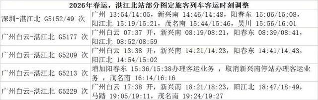1月31日起,开行湛江北—上海虹桥G248次、湛江北—深圳G5150/1次、湛江北—汕头G5138次;