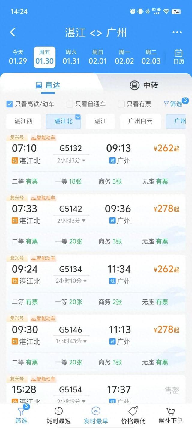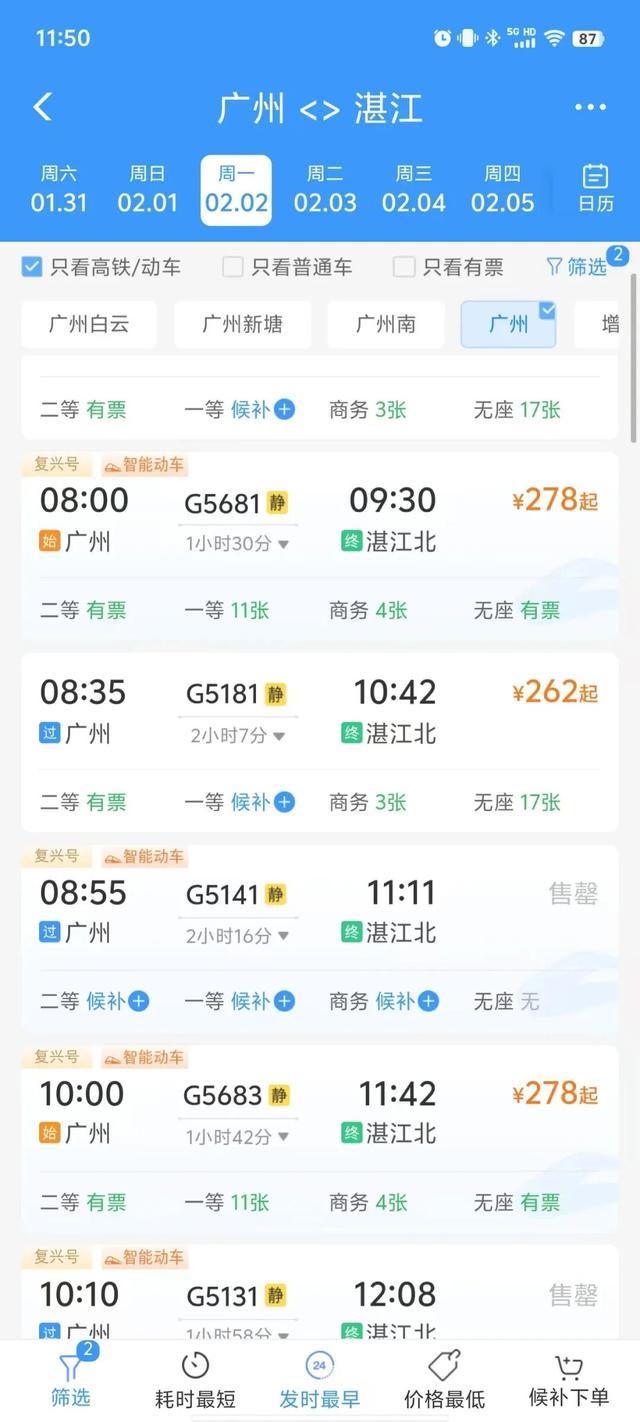 最快1小时30分即可抵达湛江北站